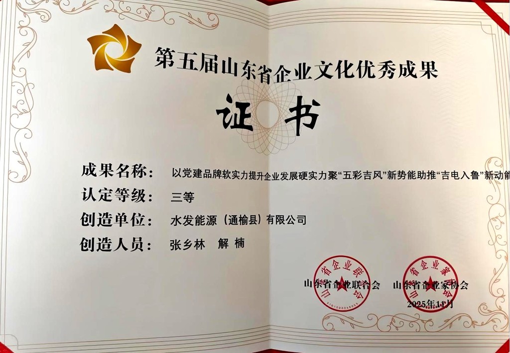 “五彩吉风”党建品牌荣获第五届山东省企业文化优秀成果三等奖