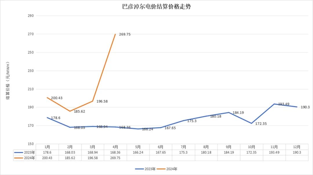 巴彦淖尔电站4月份结算价格同比增长60.22%
